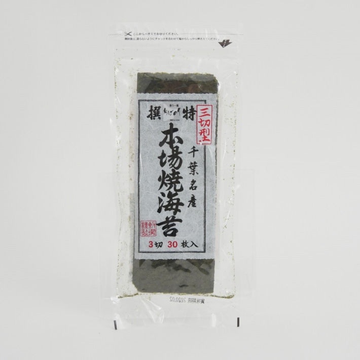 風味と歯切れのよさにこだわり、千葉県産海苔をおにぎり・お餅用に最適な3切サイズに裁断しました。